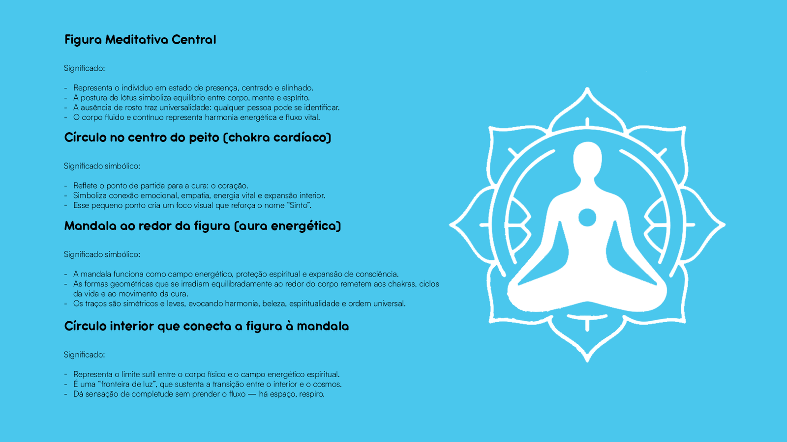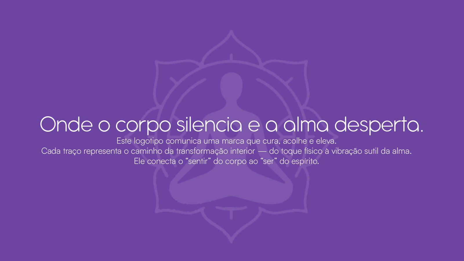 O Símbolo Sagrado: No centro, a silhueta humana em postura de lótus representa o estado de presença e alinhamento.