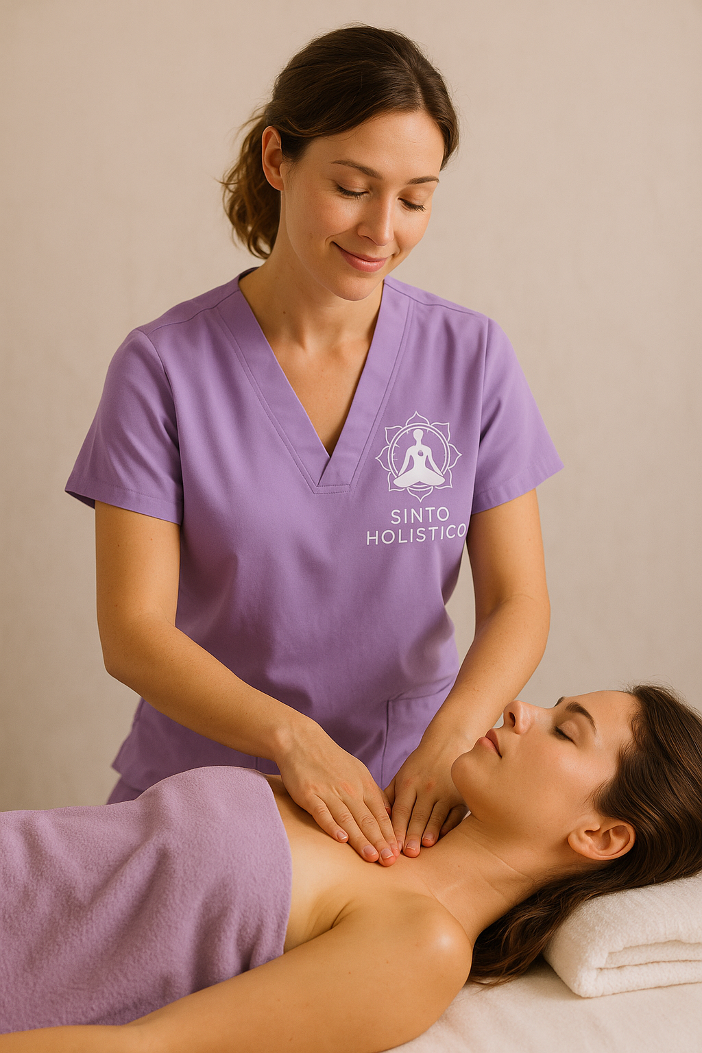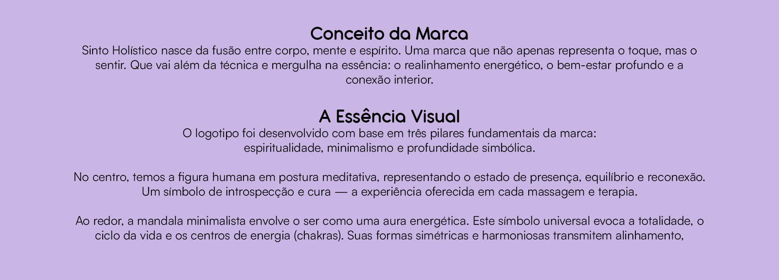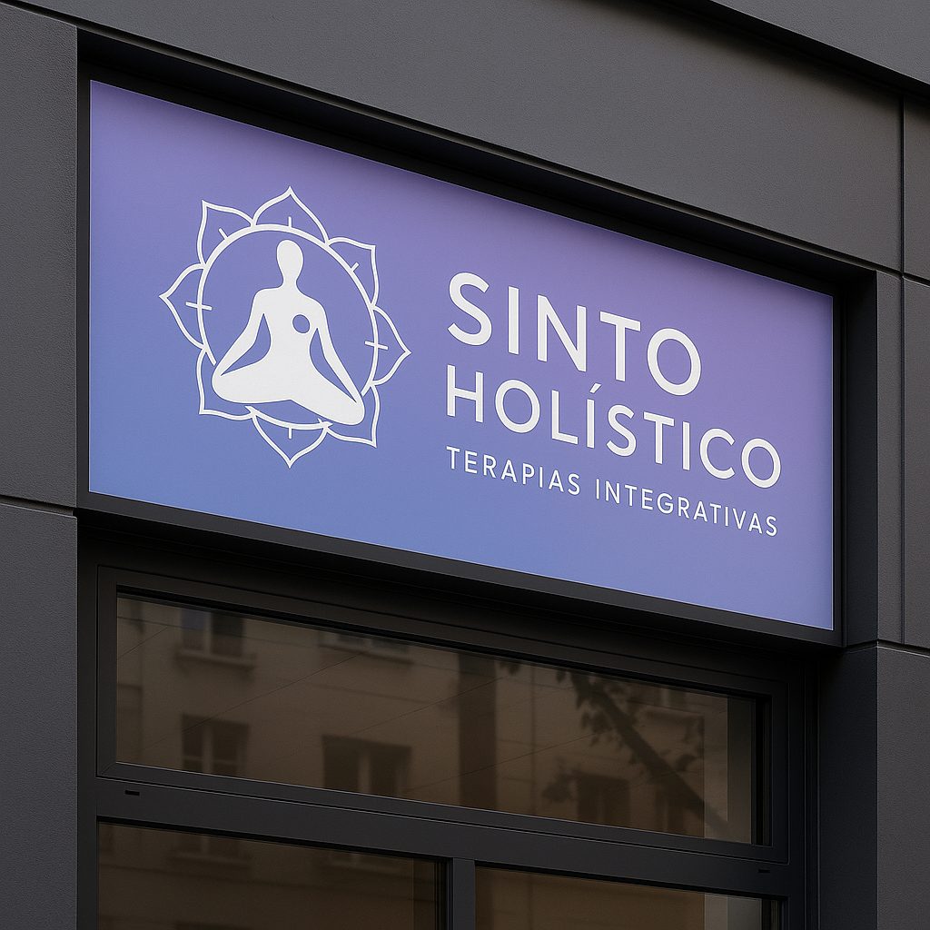 Projeto de identidade visual desenvolvido para o espaço Sinto Holístico, unindo massoterapia e terapias energéticas.